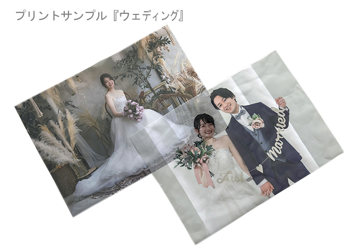 ご希望の画像で印刷した布以外に、同封サンプルは『風景』または、『ウェディング』のいずれかご希望のジャンルの明記をお願いします。明記がない場合は同封しませんが、ご希望の画像を透けない普通の布にも印刷して合計2枚お届けいたします。