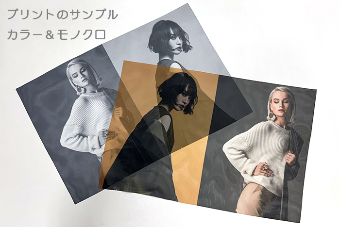 オーガンジーやチュールなど、お客様がご用意した布を持ち込み頂く事も可能。「グラスオーガンジー」を持ち込まれるお客様が多いです。特に「グラスオーガンジー」のように「透け感がかなり高い布」への印刷の場合、あまり強弱の無い(メリハリの無い)グラフィックなどは、透ける布の印刷には向いておりません。何を印刷したのか良く分からない状態となるケースが多いです。カラーでもモノクロでも、メリハリがしっかりしているデザインであれば、綺麗に印刷できます。